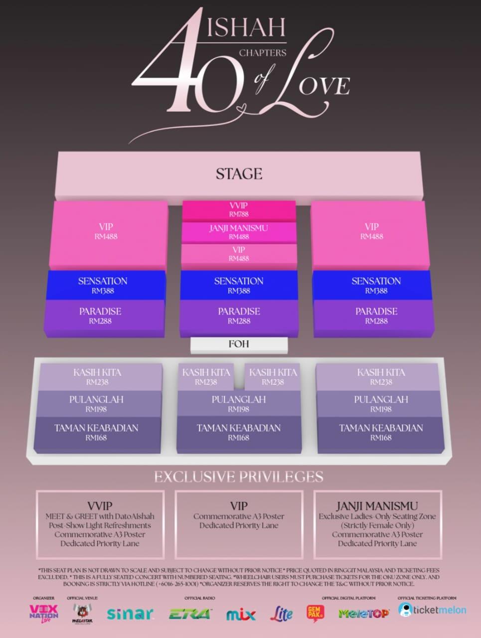 Tiket kini dijual menerusi Ticketmelon dengan harga bermula RM168 hingga RM788.