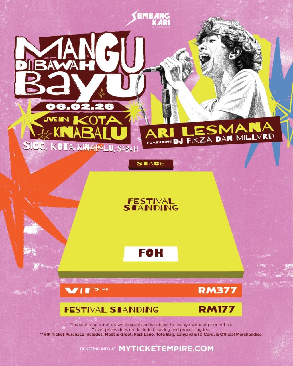 Buat julung kalinya, penyanyi ikonik Indonesia dan vokalis kumpulan Fourtwnty, Ari Lesmana, bakal menyapa peminat di Sabah menerusi konsert solo istimewa bertajuk “Mangu Di Bawah Bayu” yang dijadualkan berlangsung pada 6 Februari 2026 di Sabah International Convention Centre (SICC).
