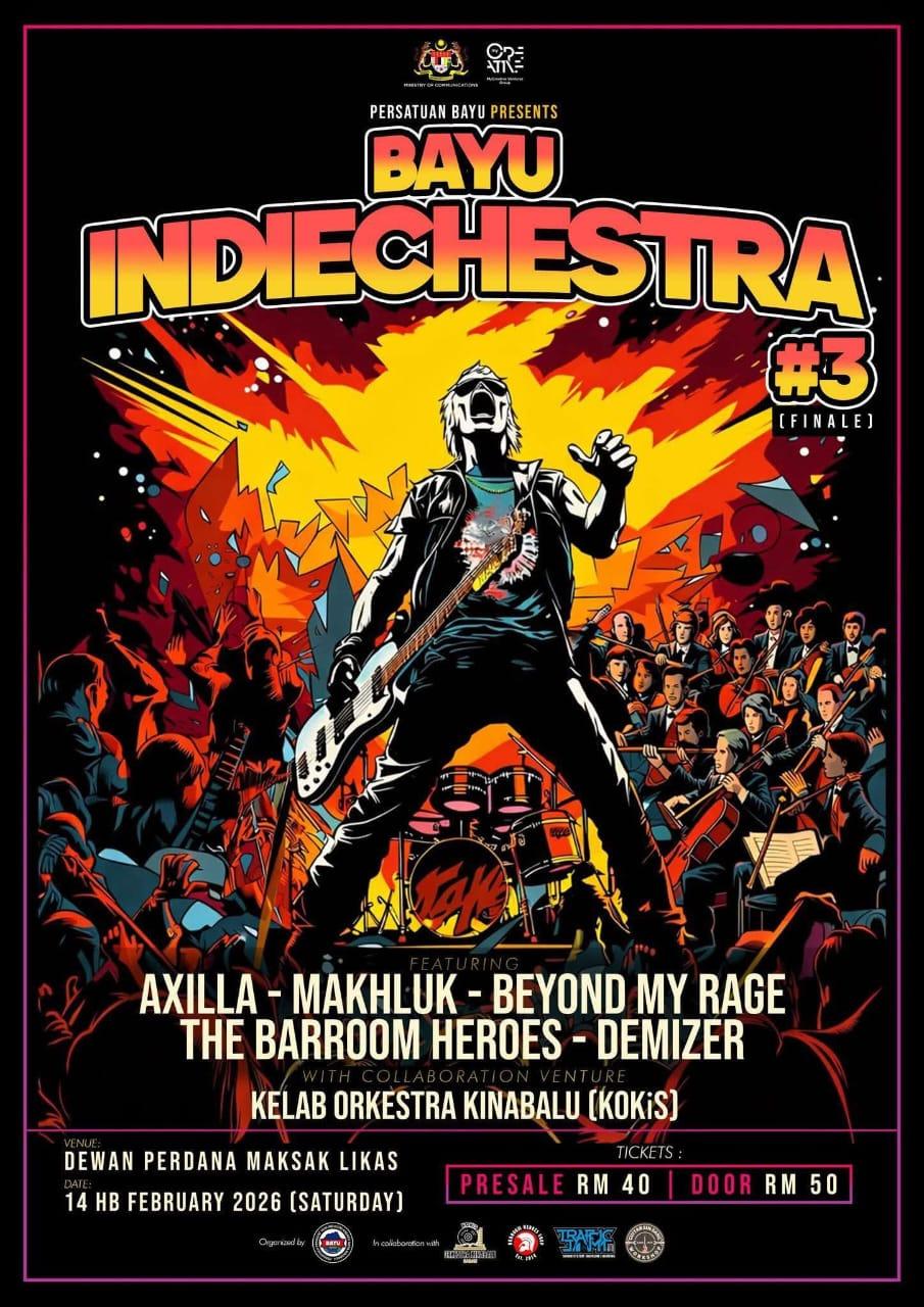 Bayu Indiechestra kembali untuk edisi ketiga sebagai salah satu acara paling dinanti dalam kalender muzik alternatif Sabah. Dijadualkan berlangsung pada 14 Februari 2026 di Dewan Perdana MAKSak Likas, Kota Kinabalu, konsert ini meneruskan tradisi unik yang menggabungkan kekuatan muzik indie dan rock tempatan dengan keindahan susunan orkestra secara langsung. Dianjurkan oleh Persatuan BAYU, Bayu Indiechestra bukan sekadar sebuah persembahan pentas, tetapi sebuah pernyataan artistik tentang keberanian bereksperimen dan kesungguhan komuniti muzik Sabah untuk mengangkat karya tempatan ke tahap yang lebih tinggi.
