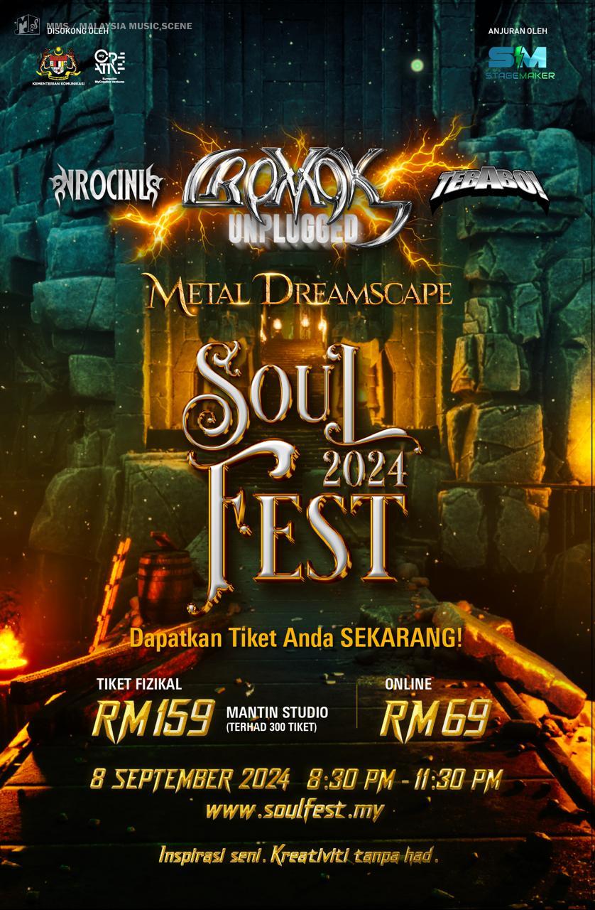 Turut menampilkan Nrocinu dan Tebabo, SoulFest 2024 boleh dihadiri sama ada secara fizikal, terhad untuk 300 peminat, di Metal Dreamscape, Studio Mantin atau secara Live Streaming.