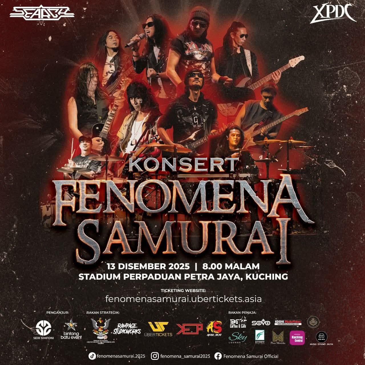 Dua nama yang tidak perlu lagi diperkenalkan dalam peta rock dan heavy metal Malaysia — Search dan XPDC bakal mencipta sejarah tersendiri apabila berkongsi pentas dalam Konsert Fenomena Samurai pada 13 Disember nanti di Stadium Perpaduan, Petra Jaya, Kuching.