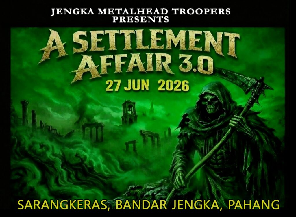 Berita yang cukup mengujakan buat peminat muzik ekstrem tanah air apabila acara bawah tanah yang semakin mendapat tempat, A Settlement Affair 3.0, dijangka kembali menggegarkan Bandar Jengka, Pahang pada 27 Jun 2026. Selepas dua edisi terdahulu mencipta fenomena tersendiri di negeri tersebut, penganjur sekali lagi tampil dengan perancangan lebih besar dan berani, sekali gus mengukuhkan kedudukan siri gig ini sebagai antara acara metal luar bandar paling signifikan ketika ini.