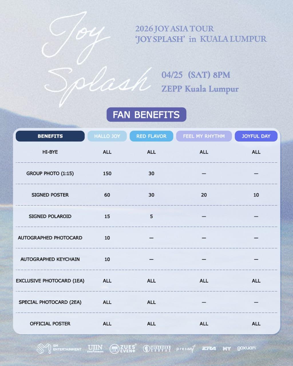 “Ia tentang mencipta malam istimewa yang menghubungkan JOY dengan peminat di sini, selain membuka peluang untuk lebih banyak penganjuran konsert K-pop menarik di Malaysia pada masa akan datang,” katanya.