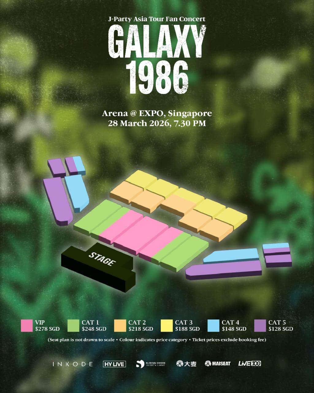 Peminat boleh mendapatkan tiket (SGD)VIP : $278, CAT 1: $248, CAT 2: $218, CAT 3: $188, CAT 4: $148 dan CAT 5: $128 (Tidak termasuk yuran tempahan).