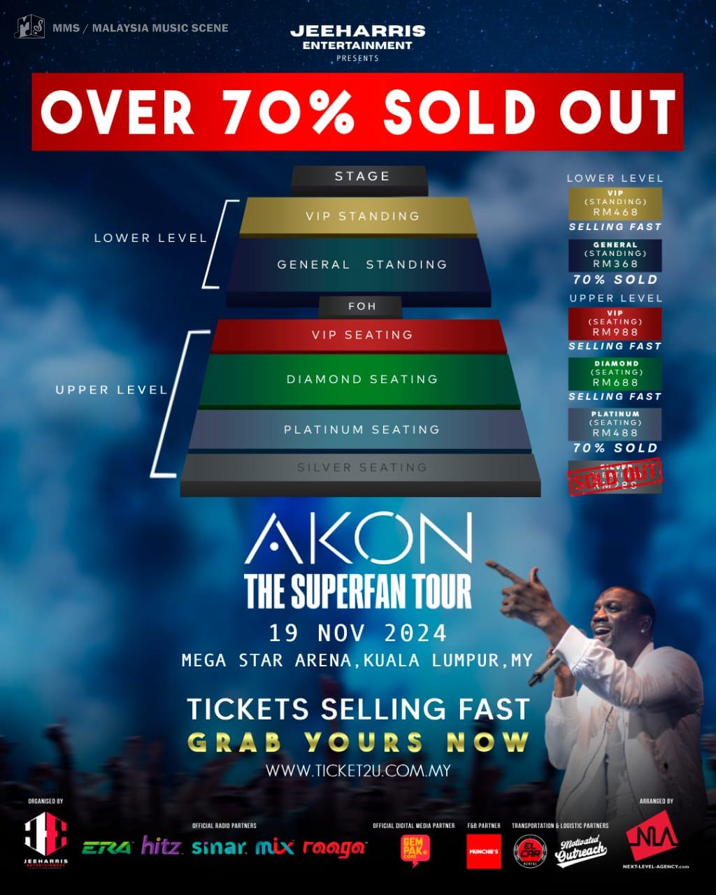 Lima hari menjelang Akon The Superfan Tour Live in Malaysia & Singapore , 70% tiket telah terjual bagi kedua-dua lokasi Kuala Lumpur dan Singapura. Berita gembira ini telah dikongsi oleh Harris Baba selaku Pengarah Urusan Jeeharris Entertantment