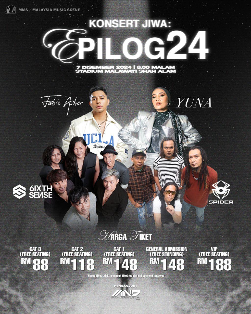 Konsert Jiwa: Epilog 2024 kali ini akan membariskan penyanyi dari Indonesia Fabio Asher yang terkenal dengan lagu Rumah Singgah. Manakala Kumpulan Spider dan 6ixth Sense juga akan muncul pada konsert yang akan berlangsung pada 7 Disember ini mulai jam 8 malam.