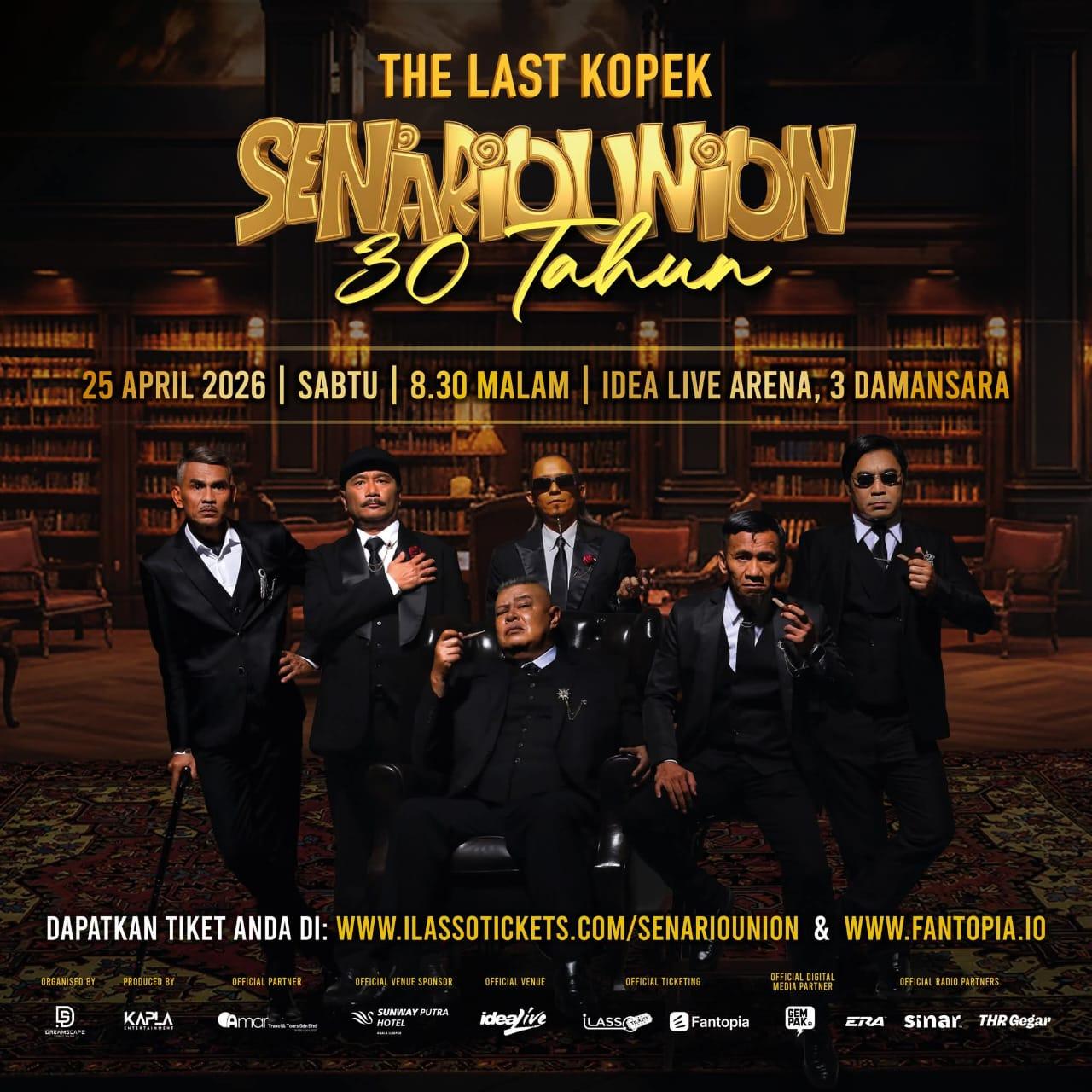 Konsert bertajuk “The Last Kopek: SenarioUnion 30 Tahun” dijadualkan berlangsung pada 25 April 2026, jam 8.30 malam di Idea Live Arena, Petaling Jaya. Dianjurkan oleh DreamScape bersama Kapla Entertainment, konsert ini merupakan hadiah istimewa buat peminat setia sempena ulang tahun ke-30 penubuhan Senario.