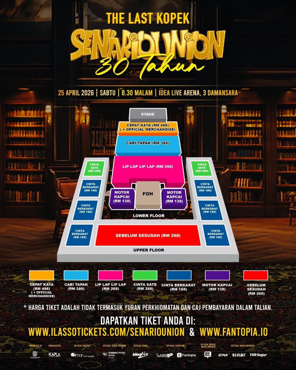 Tiket rasmi boleh dibeli secara atas talian melalui www.ilassotickets.com/Senariounion dan www.fantopia.io, kedua-duanya platform rasmi yang telah mengurus penjualan sejak dibuka awal Disember lalu.