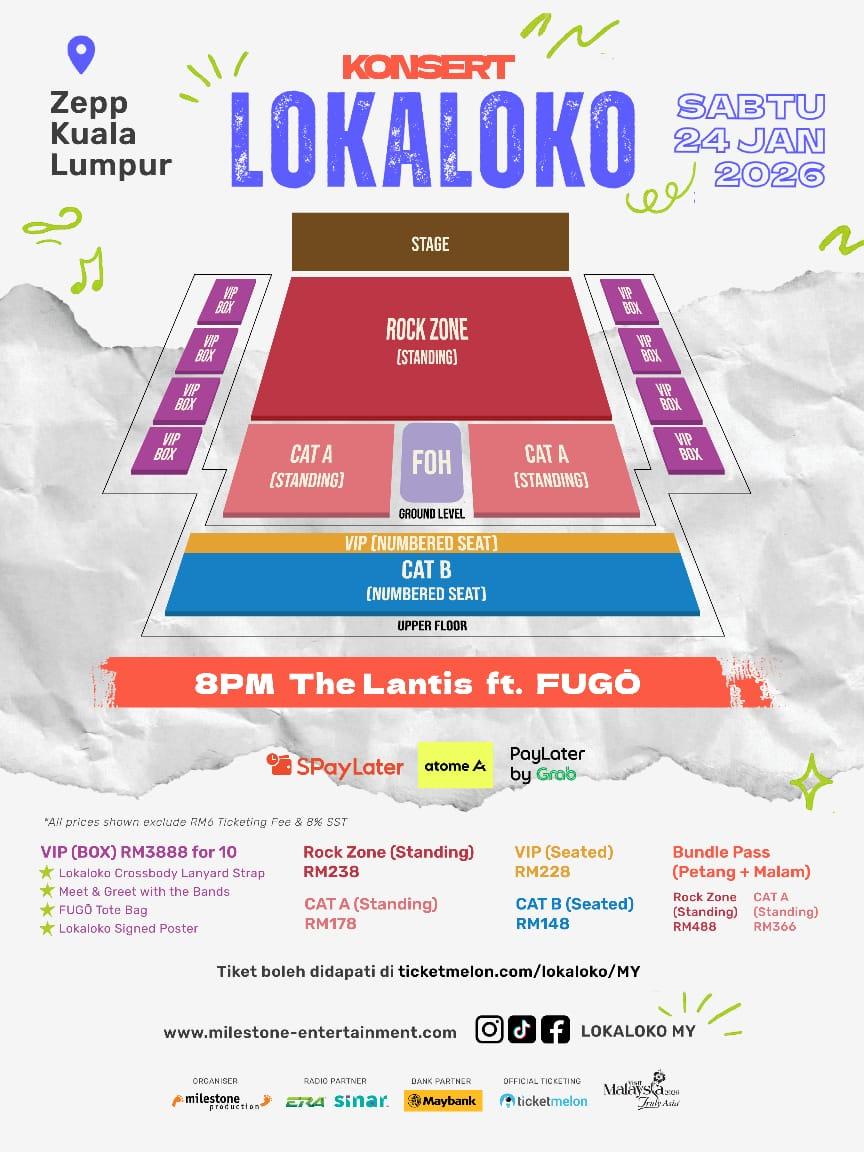 Tiket boleh dibeli di ticketmelon.com/lokaloko/MY manakala maklumat lanjut tersedia di milestone-entertainment.com.
