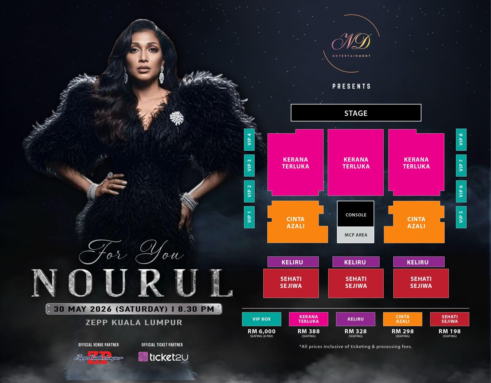 “Kami percaya pemilihan tarikh 30 Mei 2026 sangat sesuai bagi memberi ruang kepada peminat menyusun semula bajet selepas musim perayaan. Kami mahu For You Nourul menjadi hari keraian khas untuk Nourul dan peminat dalam suasana lebih selesa dan meriah,” katanya.