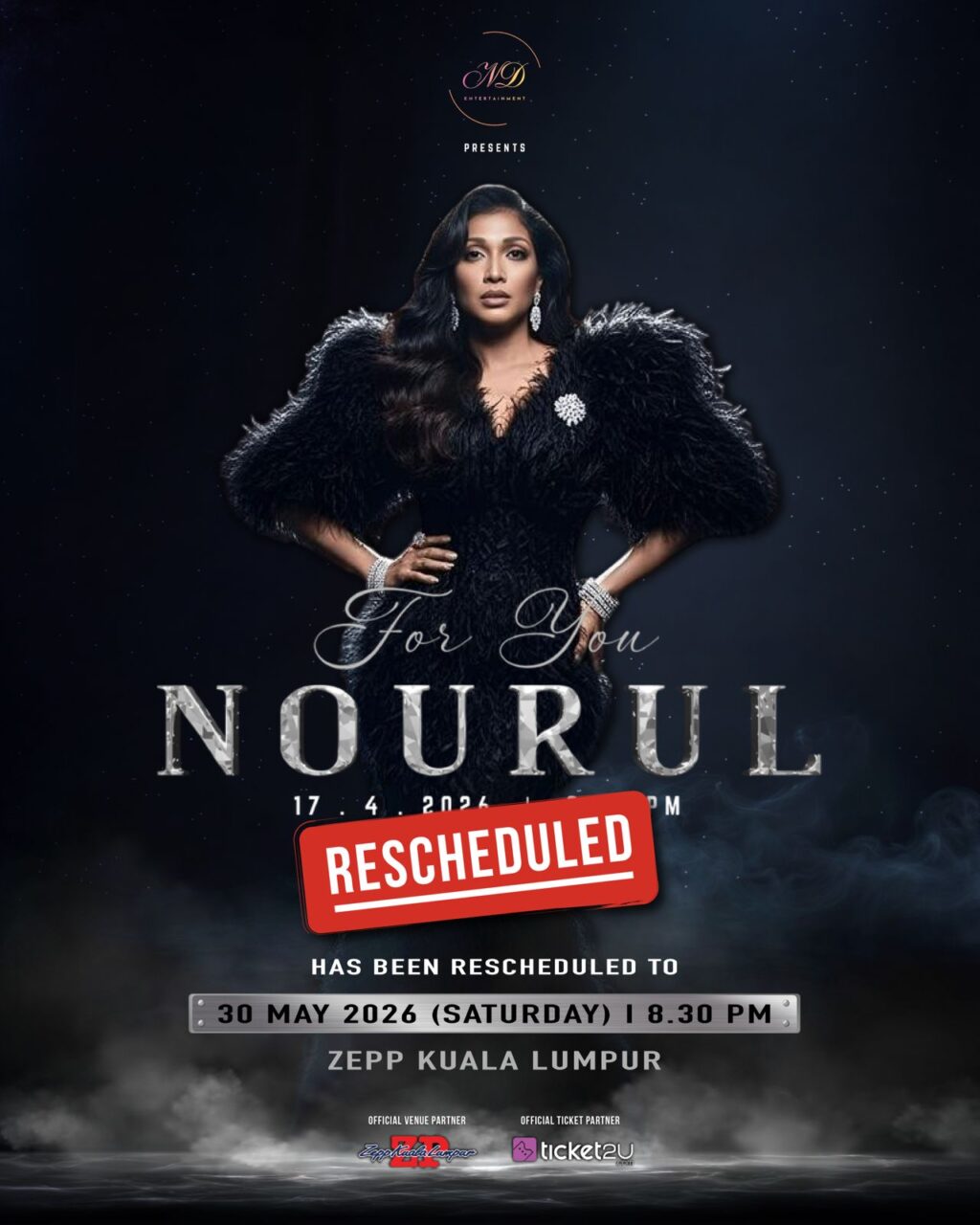 Demi memastikan persembahan terbaik buat peminat setianya, penyanyi terkenal, Nourul mengambil keputusan menunda tarikh konsert solo sulungnya, For You Nourul ke 30 Mei 2026.