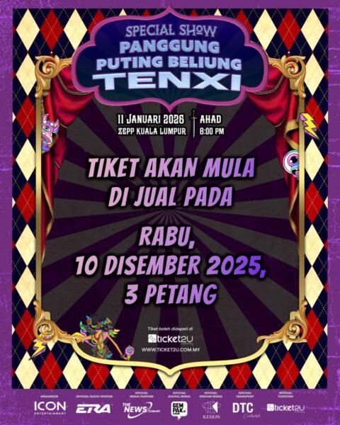 Jualan tiket dibuka Rabu, 10 Disember 2025, jam 3:00 petang dan tersedia di Ticket2U. Dengan harga yang mesra peminat, Tenxi berharap seluruh Tenxiholic dapat merasai kehangatan, energi, dan MAGIC secara langsung.