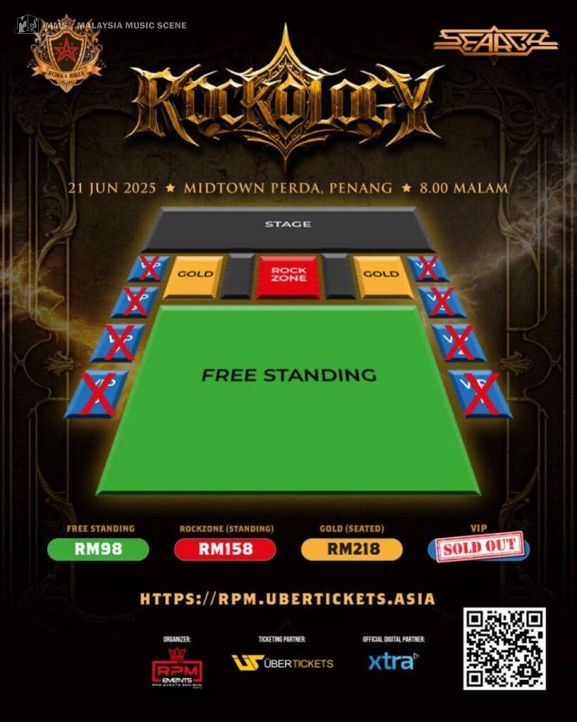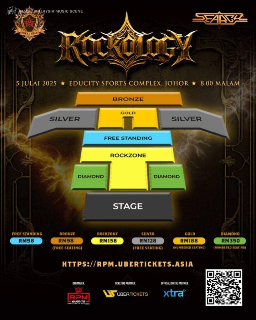 Harga Tiket untuk “Rockology Concert Tour 2025 – Pulau Pinang”, Free Standing – RM98, Rockzone (Standing) – RM158 dan Gold (Seated) – RM218. Manakala “Rockology Concert Tour 2025 – Johor”, Free Standing – RM98, Bronze (Free Seating) – RM98, Silver (Free Seating) – RM128, Rockzone (Standing) – RM158, Gold (Numbered Seating) – RM188 dan Diamond (Numbered Seating) – RM350