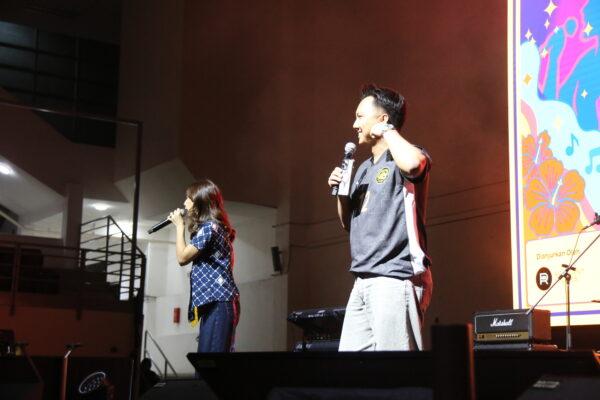 Sepanjang malam, suasana di dewan semakin gamat dengan kehadiran dua pengacara serasi — Raden dan Shasha — yang berjaya menceriakan suasana dari mula hingga akhir. Lawak spontan, celoteh bersahaja dan interaksi mereka dengan penonton menambah kemeriahan konsert, memastikan tiada satu pun detik terasa hambar.