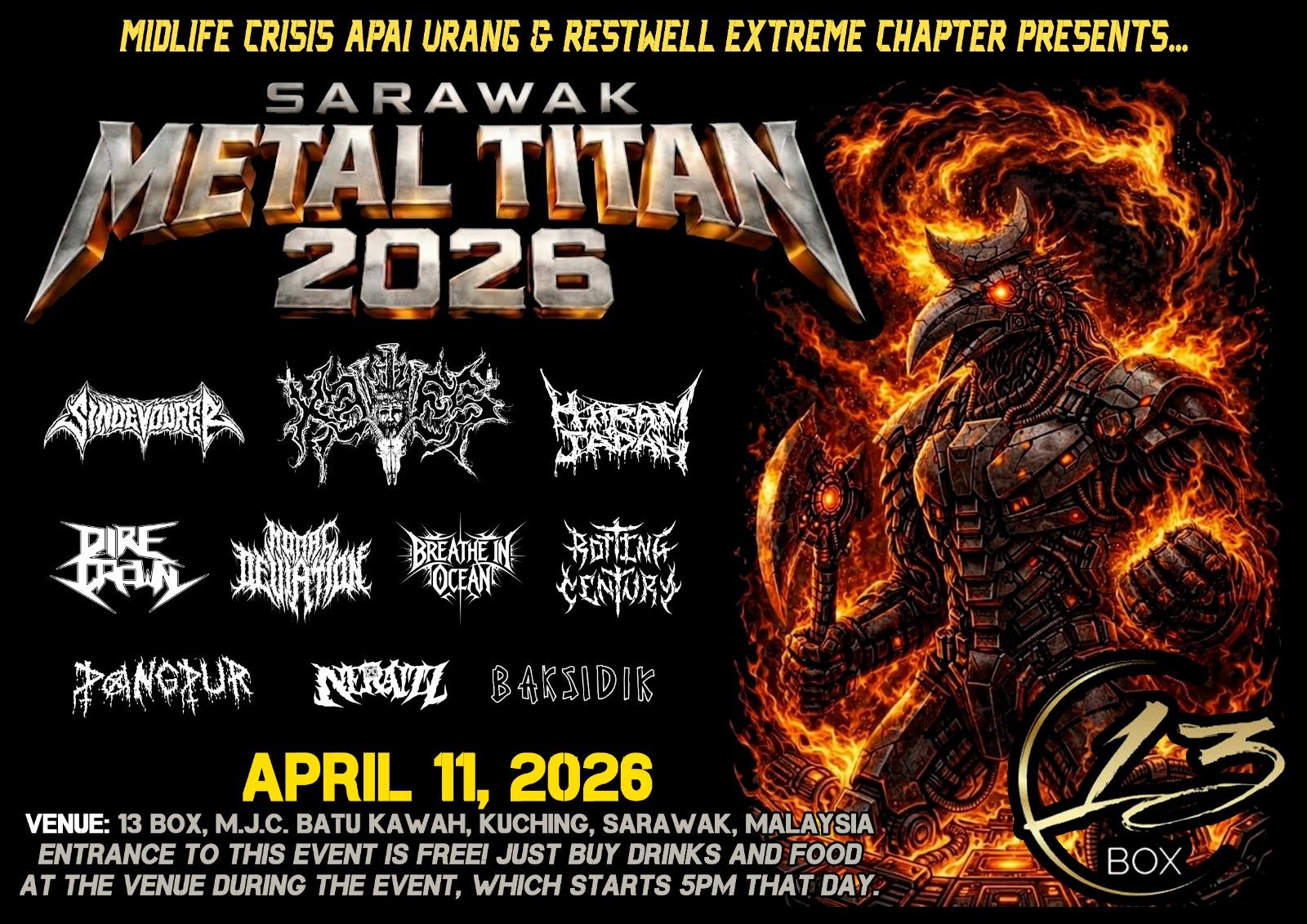 Sarawak Metal Titan merupakan hasil kerjasama Midlife Crisis Event dan Restwell Extreme Chapter bersama Box13 Karaoke Bar, dengan kemasukan percuma sebagai tanda sokongan kepada komuniti muzik tersebut.