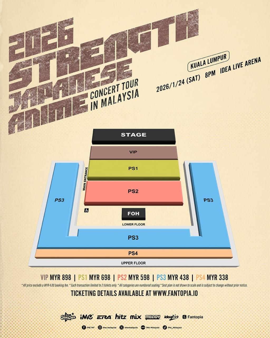 Tiket mula dijual pada 12 Disember 2025, jam 12 tengah hari melalui platform fantopia.io dengan harga bermula RM338 hingga RM898. Melihat kepada gabungan artis dan rekod permintaan peminat anime di Malaysia, tiket dijangka menjadi rebutan.