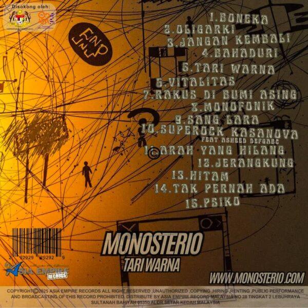 Dengan pelancaran TARI WARNA yang kini menembusi pasaran serantau, Monosterio membuktikan bahawa muzik Malaysia masih berdenyut dan bersinar, mewarnai dunia dengan semangat serta identiti tersendiri.