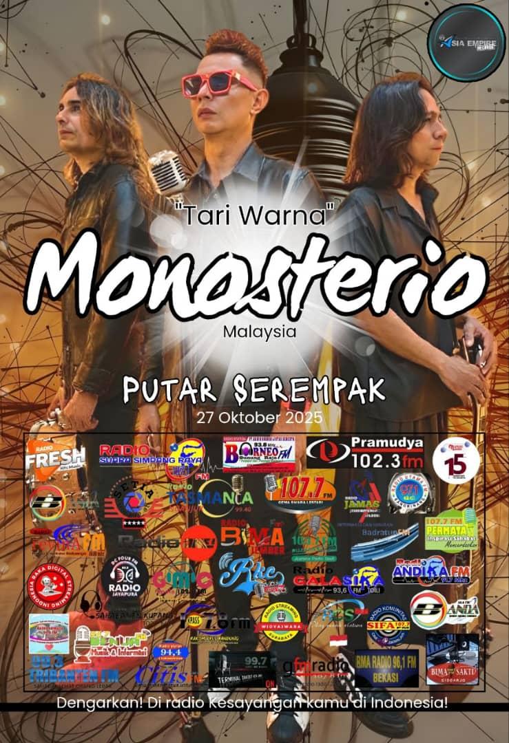 Tidak sekadar meraikan ulang tahun ke-20 perjalanan seni mereka, kumpulan rock indie Monosterio turut mencipta sejarah tersendiri apabila album terbaru mereka berjudul “TARI WARNA” dilancarkan secara serentak di Indonesia dengan putaran istimewa di lebih 50 stesen radio di seluruh negara itu.