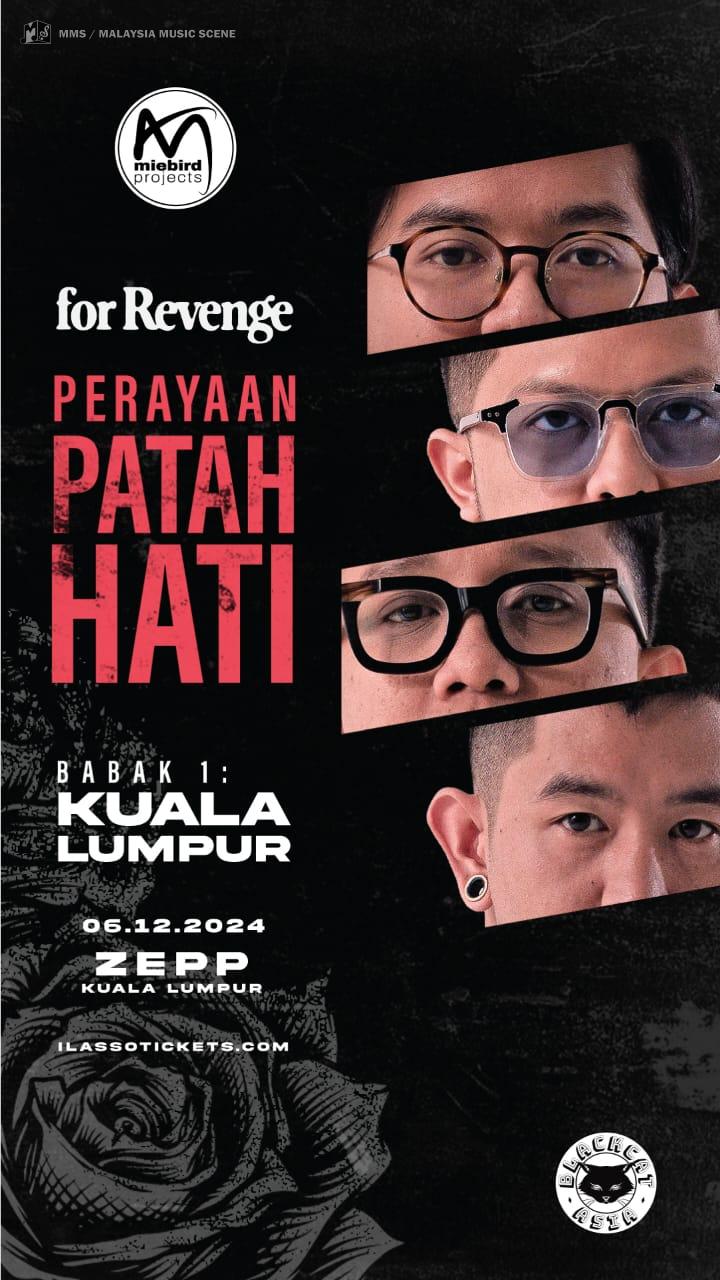 Miebird Projects bakal mempersembahkan konsert “Perayaan Patah Hati”Babak 1. Kuala Lumpur yang akan menampilkan band emo terkenal masa kini, asal Bandung, Indonesia for Revenge dari Indonesia pada 6 Disember 2024 bertempat di Zepp Kuala Lumpur, jam 8 malam.