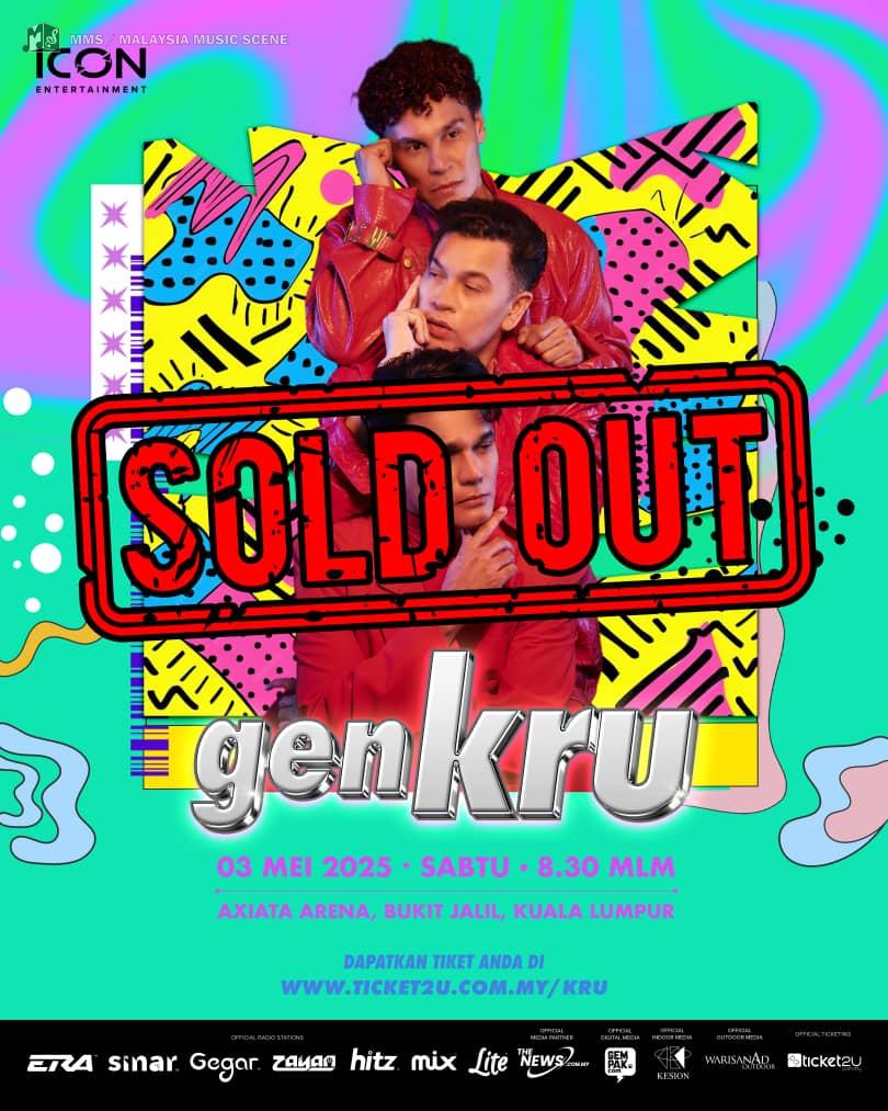 Icon Entertainment ingin mengucapkan jutaan terima kasih kepada semua peminat setia KRU atas sokongan luar biasa sehingga tiket konsert GENKRU habis dijual tepat pada pukul 12 tengah hari.