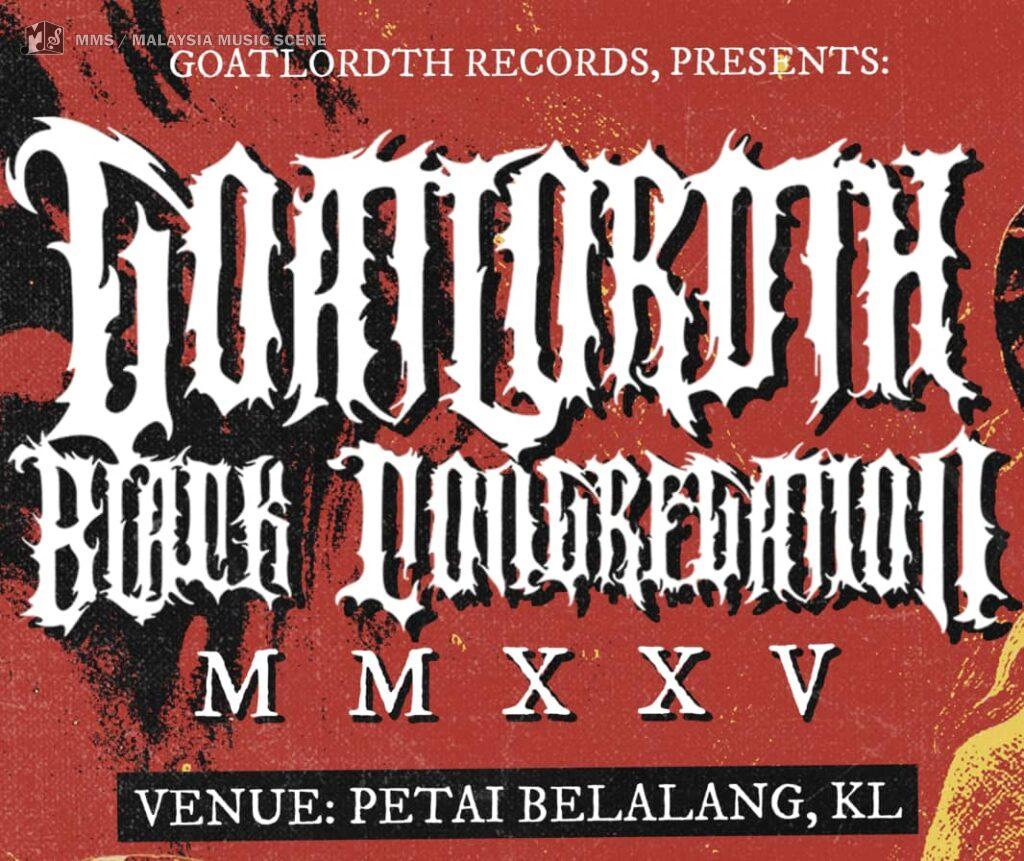 Goatlordth Records selaku penganjur cukup cakna dengan minat nuansa ekstrim sekali lagi bakal mengadakan gig yang berpaksikan “Goatlordth Black Congregation 2025”.  Ianya bakal berlangsung di @PetaibelalangKL pada 15 Februari 2025.  Persembahan bakal bermula sekitar jam 3 petang sehingga jam 11 malam.