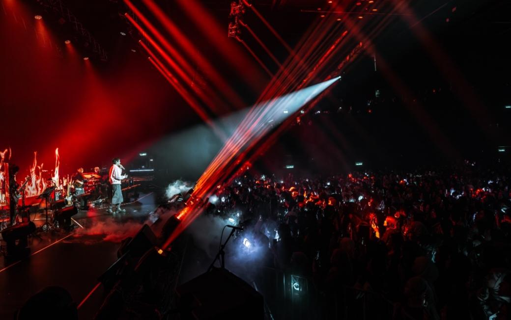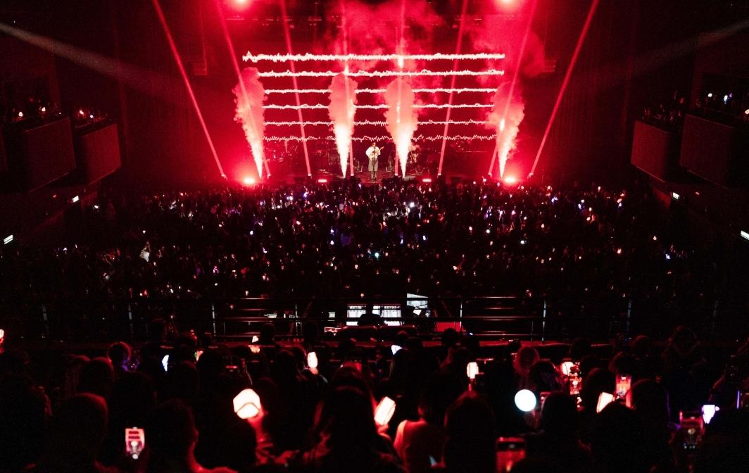 Sejurus lampu dewan dipadamkan, sorakan ribuan peminat mula bergema sebelum WOODZ muncul di pentas bersama kumpulan live band lima pemuzik miliknya.